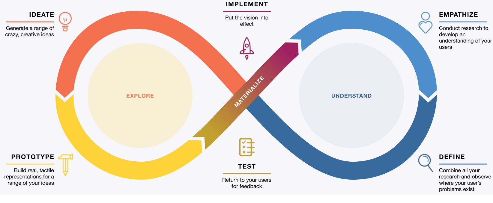The key is finding the biggest assumptions trough research, then testing the most promising solutions with actual users. Fostering a deep understanding and providing hands on tools for quickly iterating until you get it right, design thinking helps take the risk out of your development cycle and deliver a product people will actually want to use.