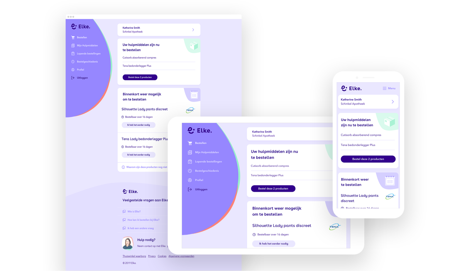 The product we made is specifically targeted at older users (age 65 and up). They're the ones making most use of the medical aids provided by Elke, but they're also the ones least used to new technology and interfaces.